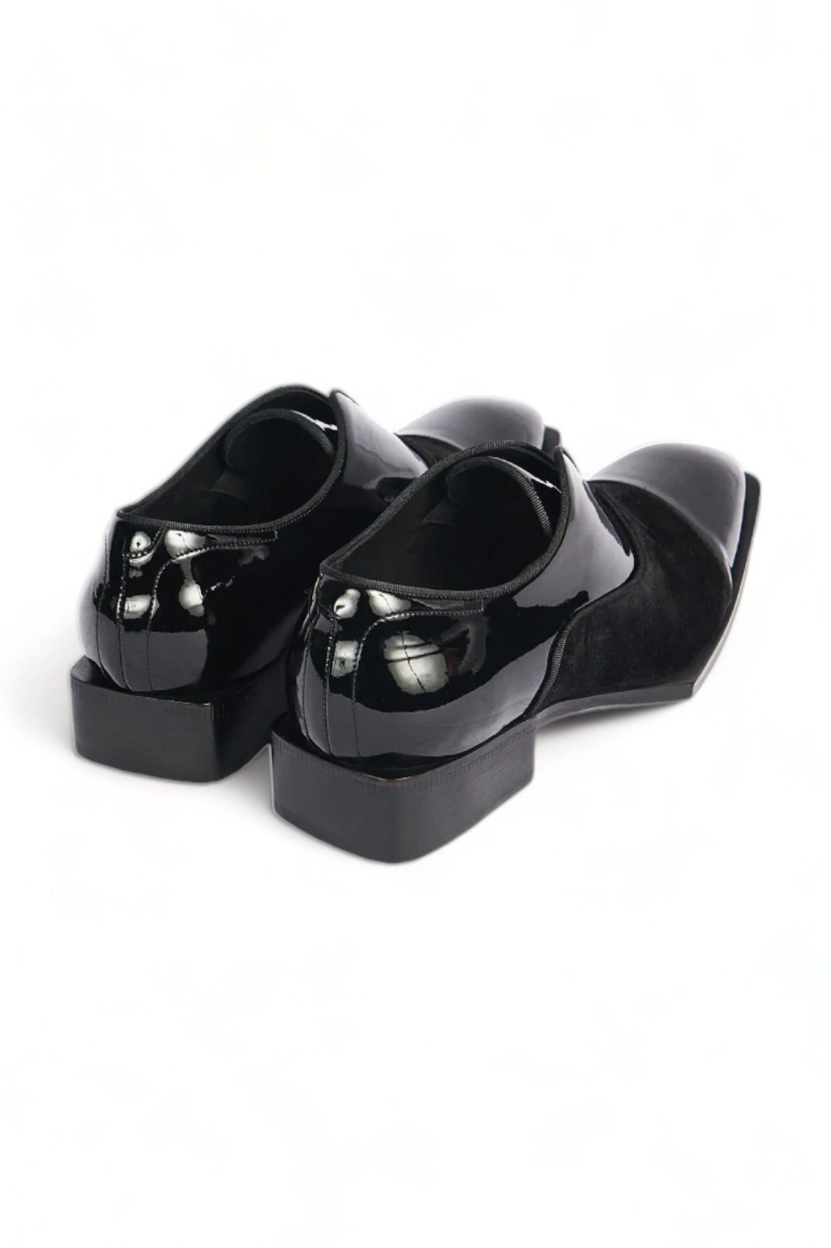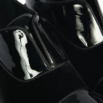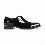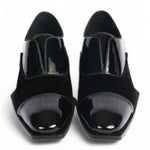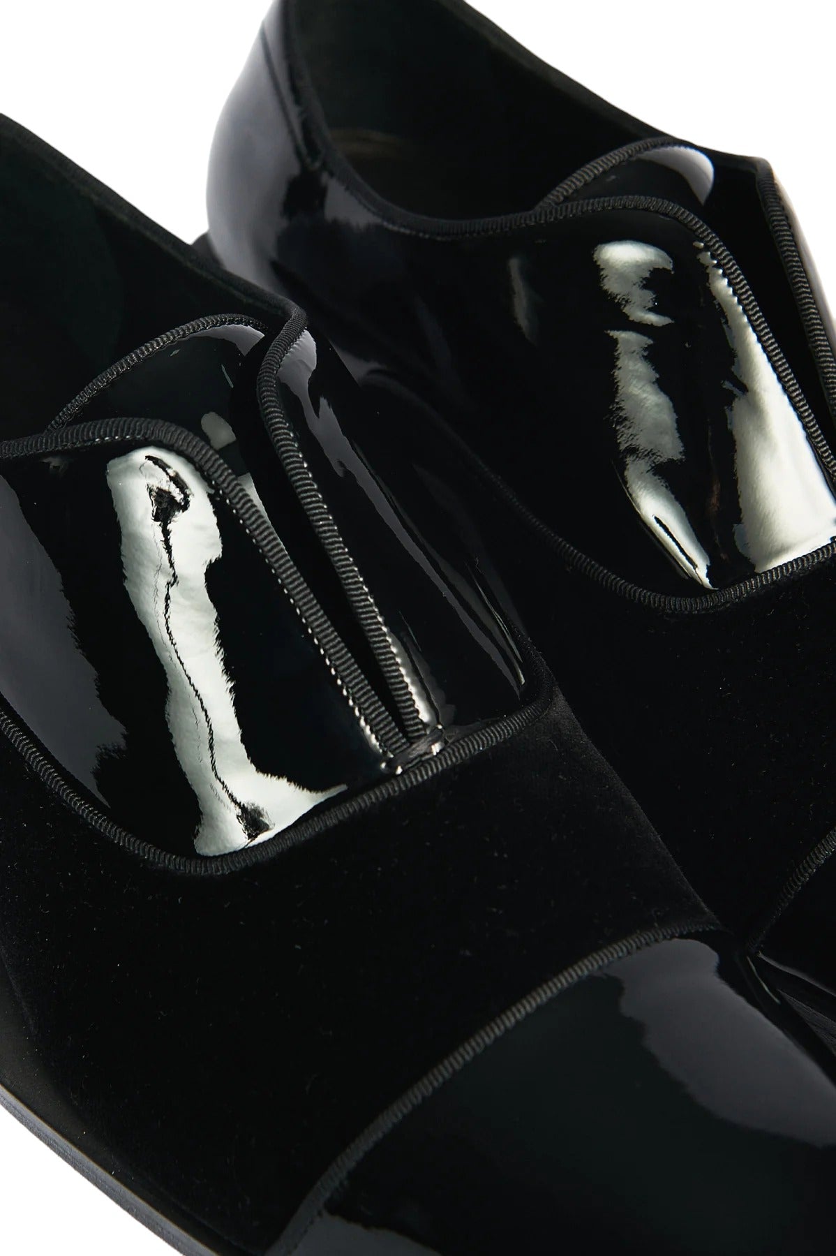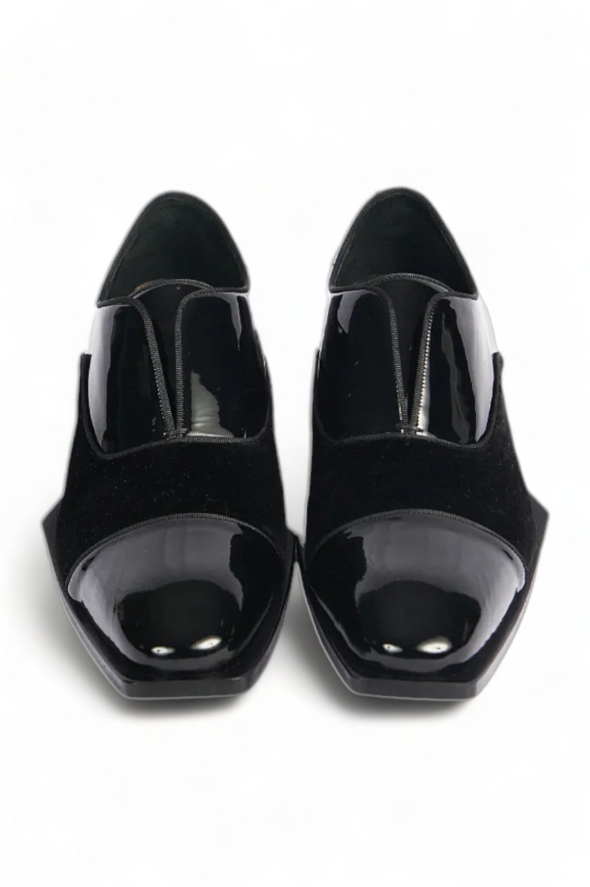 The Oxford leather and velvet shoe is a stylish and sophisticated footwear option that is perfect for dressing up any outfit. Crafted from high-quality materials, this shoe combines the classic look of polished leather with the luxurious texture of velvet to create a refined and timeless design.