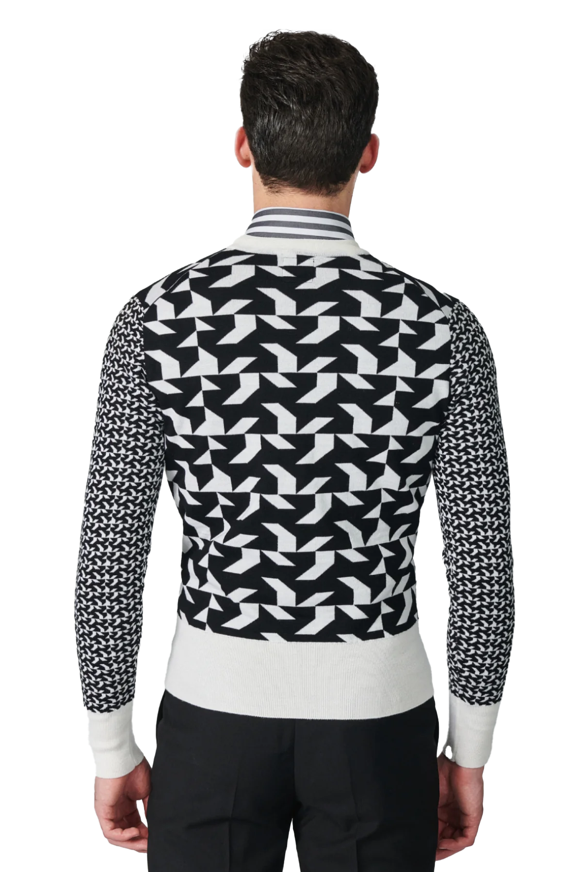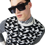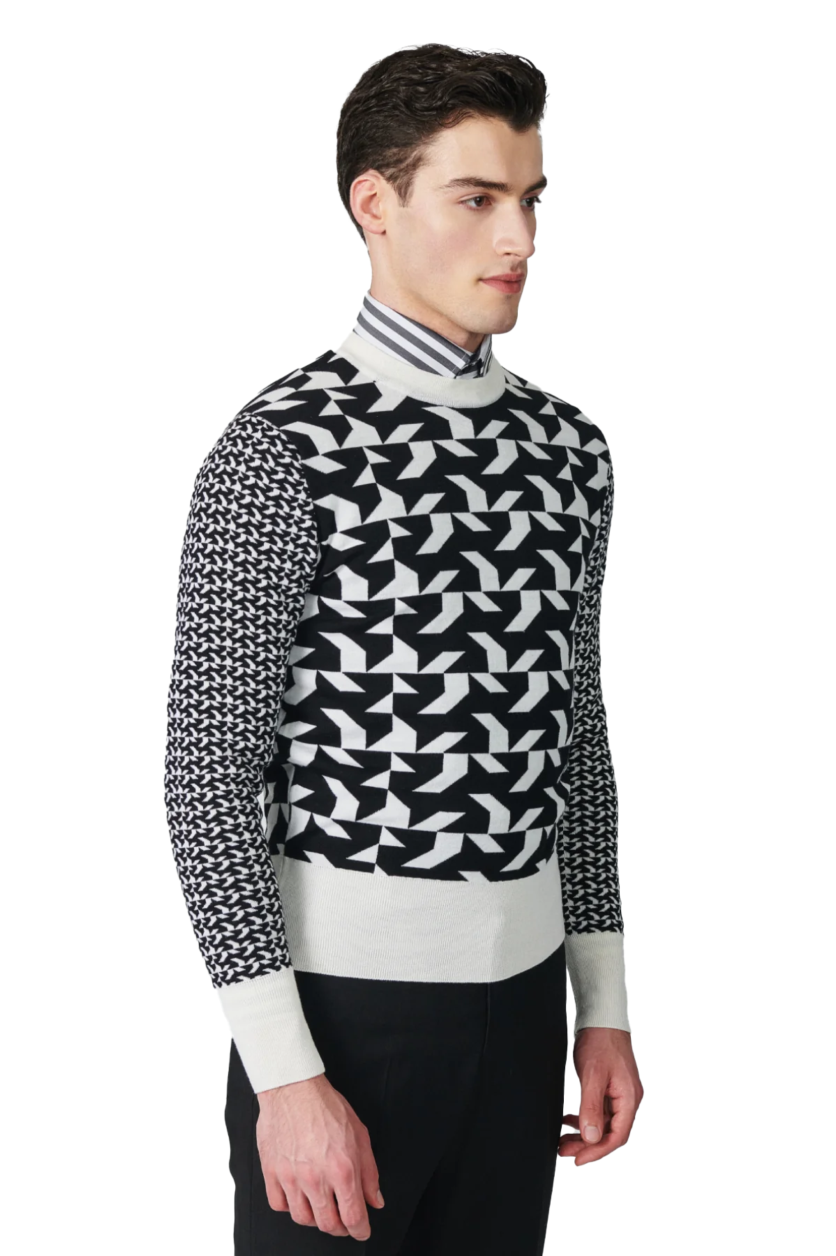 Made from 100% extra-fine merino. This crew neck sweater features a black and off-white geometric logo pattern all-over and is finished with a ribbed collar and waistband.