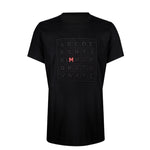 - Embroidery in black with M in red
