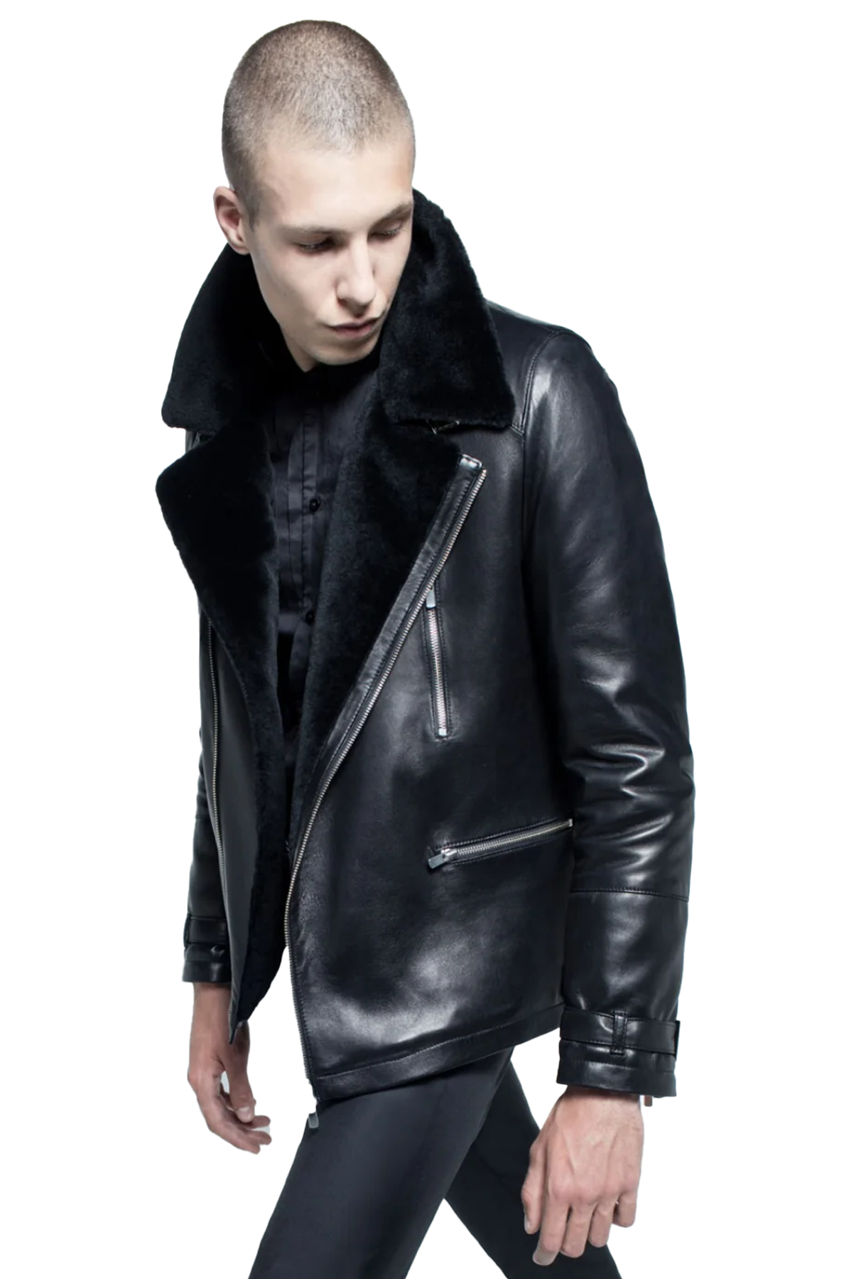 Made from premium soft Nappa black lambskin. This jacket features a classic aviator style, lightly padded, with a soft faux fur collar.