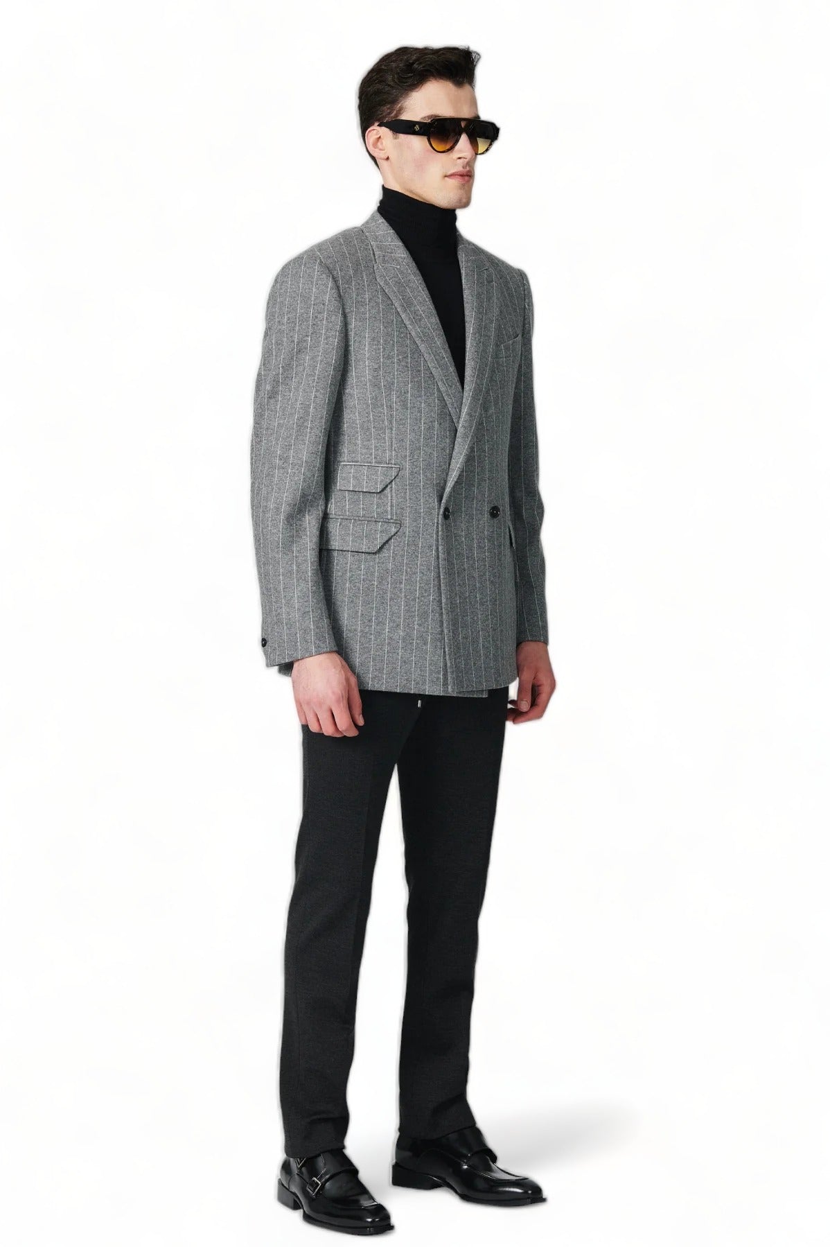- Double Breasted Mercader lapel, flaps, and cuffs design