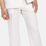 These trousers are a perfect fusion of style and comfort, crafted from luxurious wool blend fabric in an ellegant off-white hue. They offer a contemporary take on a classic tailoring , providing both sophistication and ease for your everyday wardrobe. The straight leg design exudes timeless appeal, allowing for a sleek and polished look that flatters any body type.