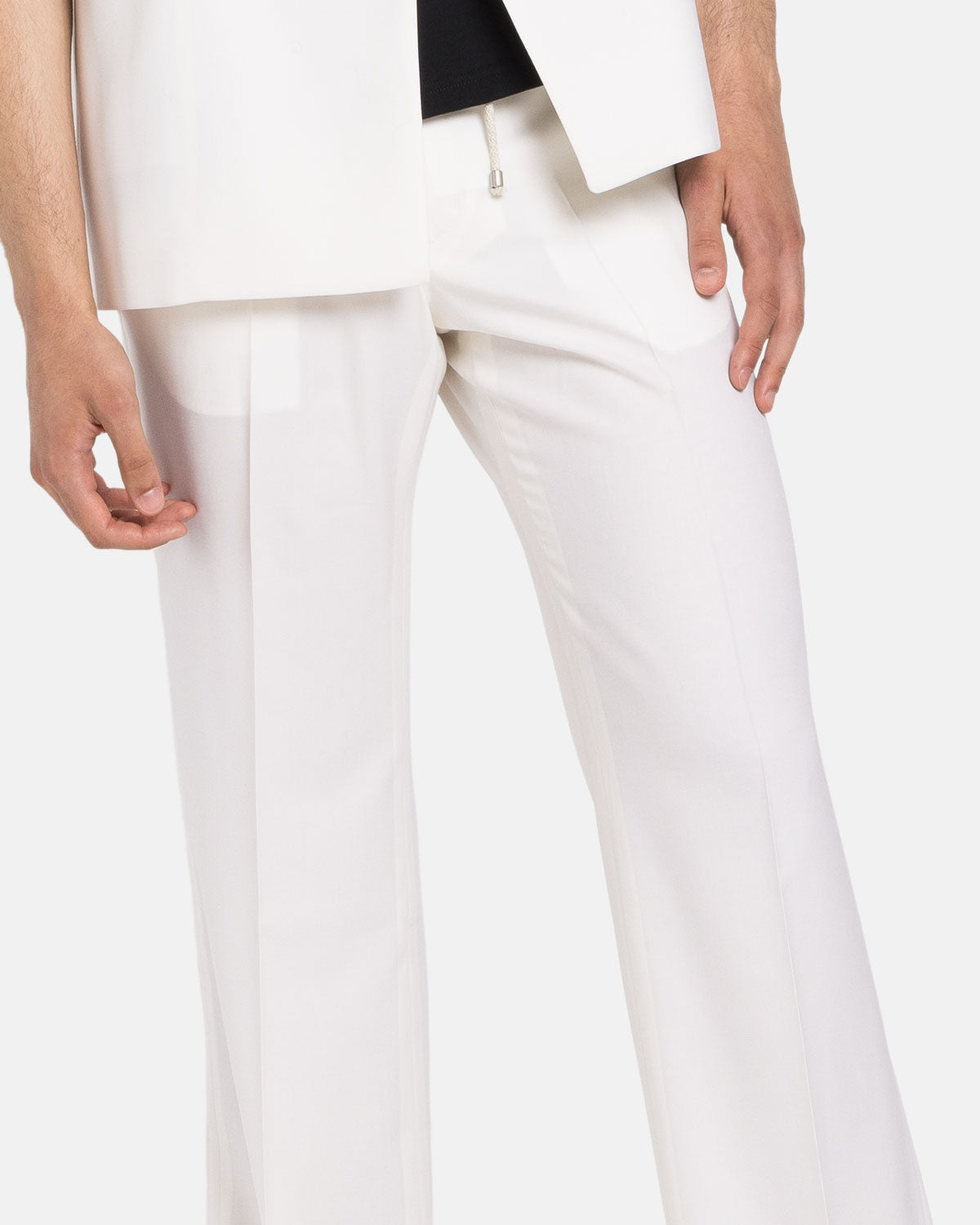 Straight Leg Drawstring Trousers Off-White