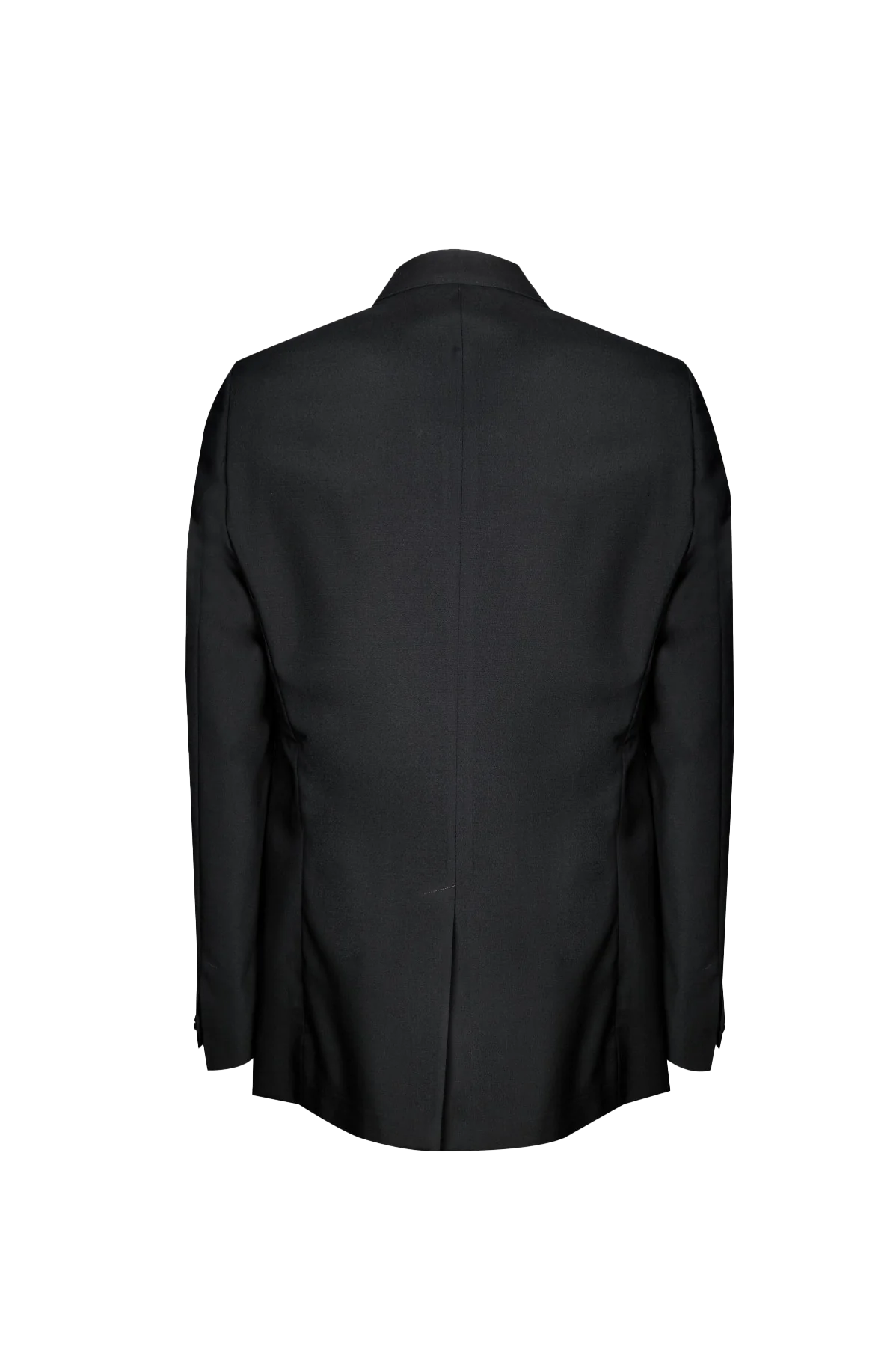 Crafted in Portugal this black half-canvas suit is constructed from premium 100% wool cloth.