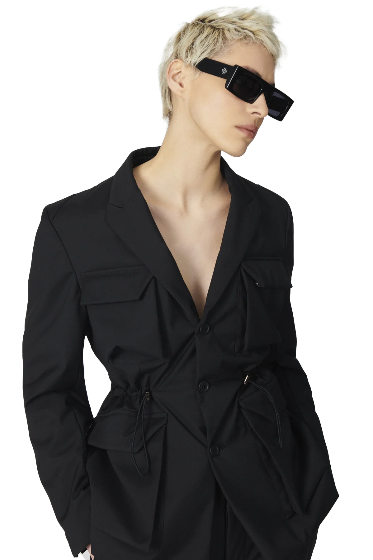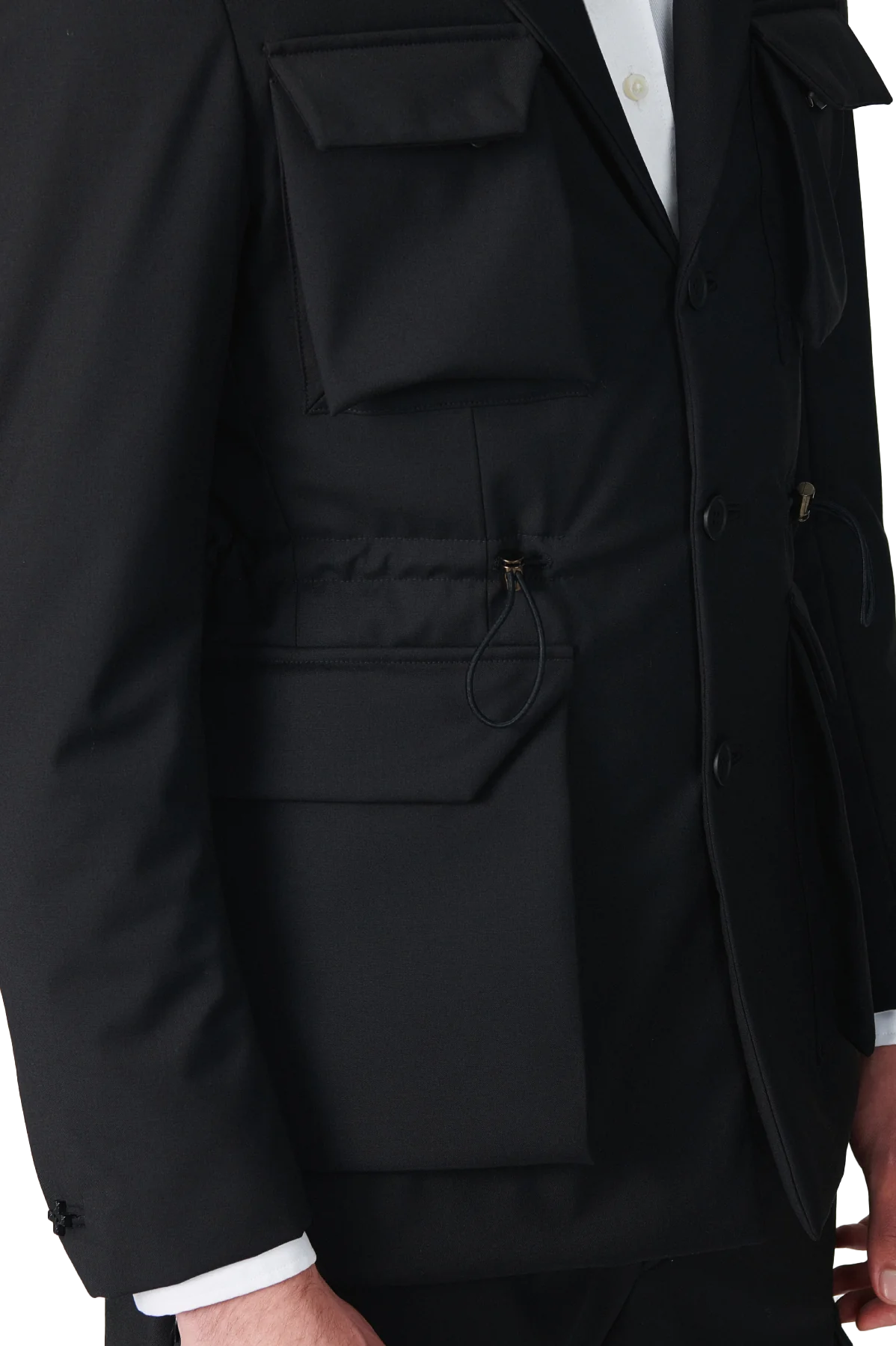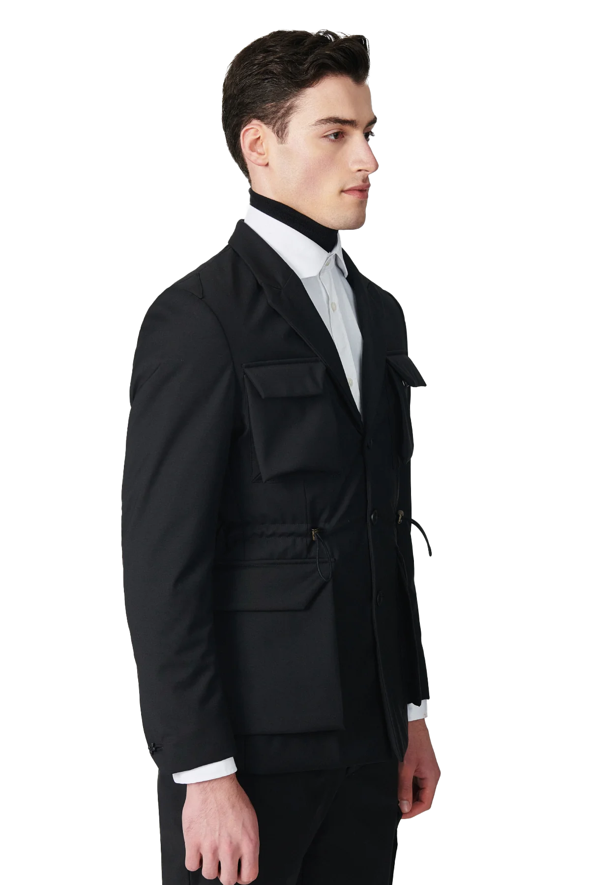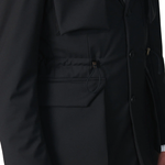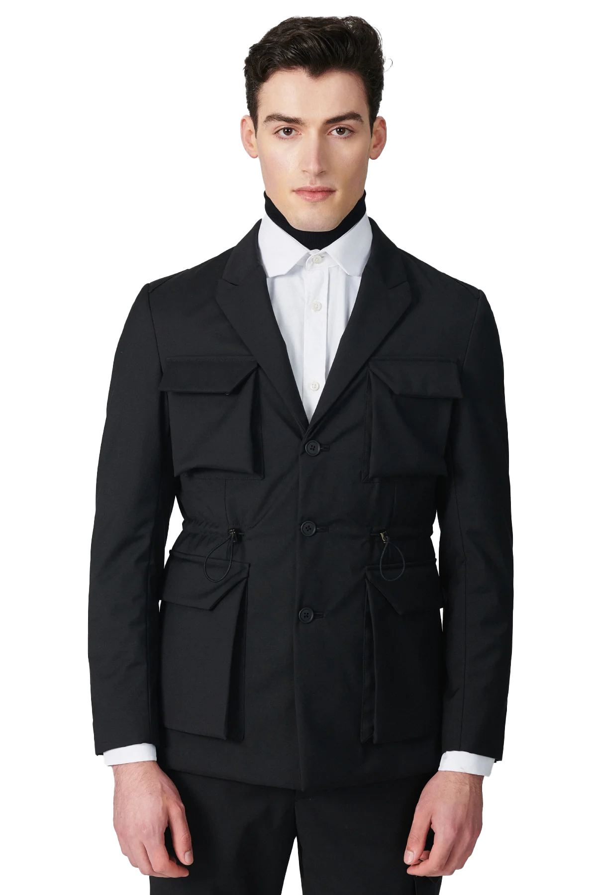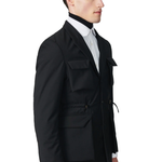 Made in Portugal from a super 150's Wool blend by Loro Piana, this blaser-style padded jacket is filled with Freudenberg Soft, and features on front 4 flap pockets and toggle adjusters on the waist.