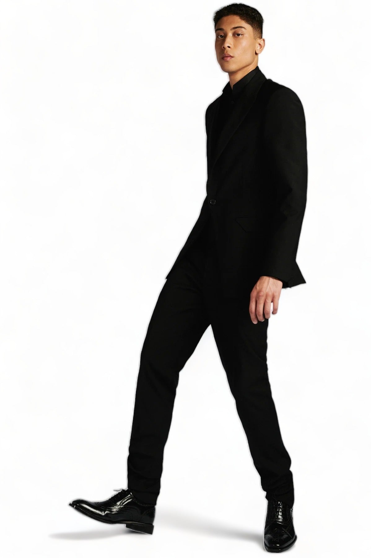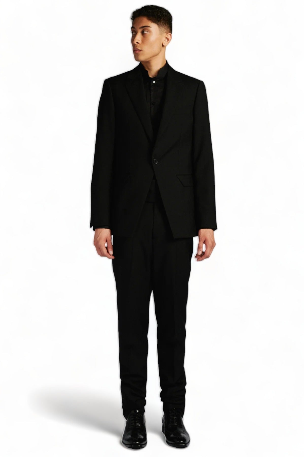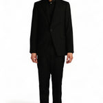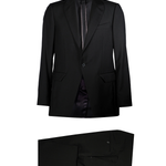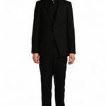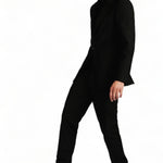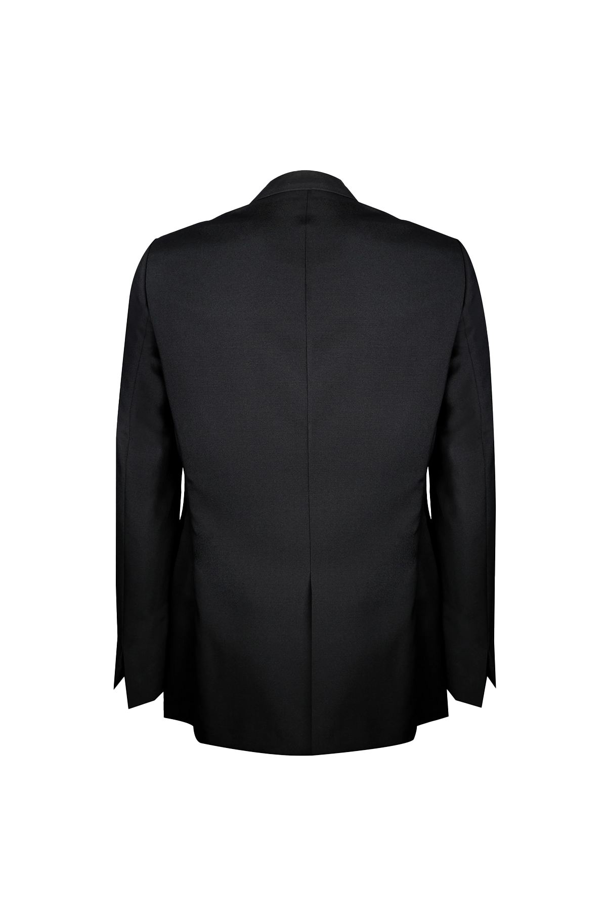 Featuring a distinctive front geometric signature cut, this black half-canvas suit is crafted from premium 100% wool cloth, ensuring both comfort and durability. With its sleek and stylish design exclusive to Mercader.