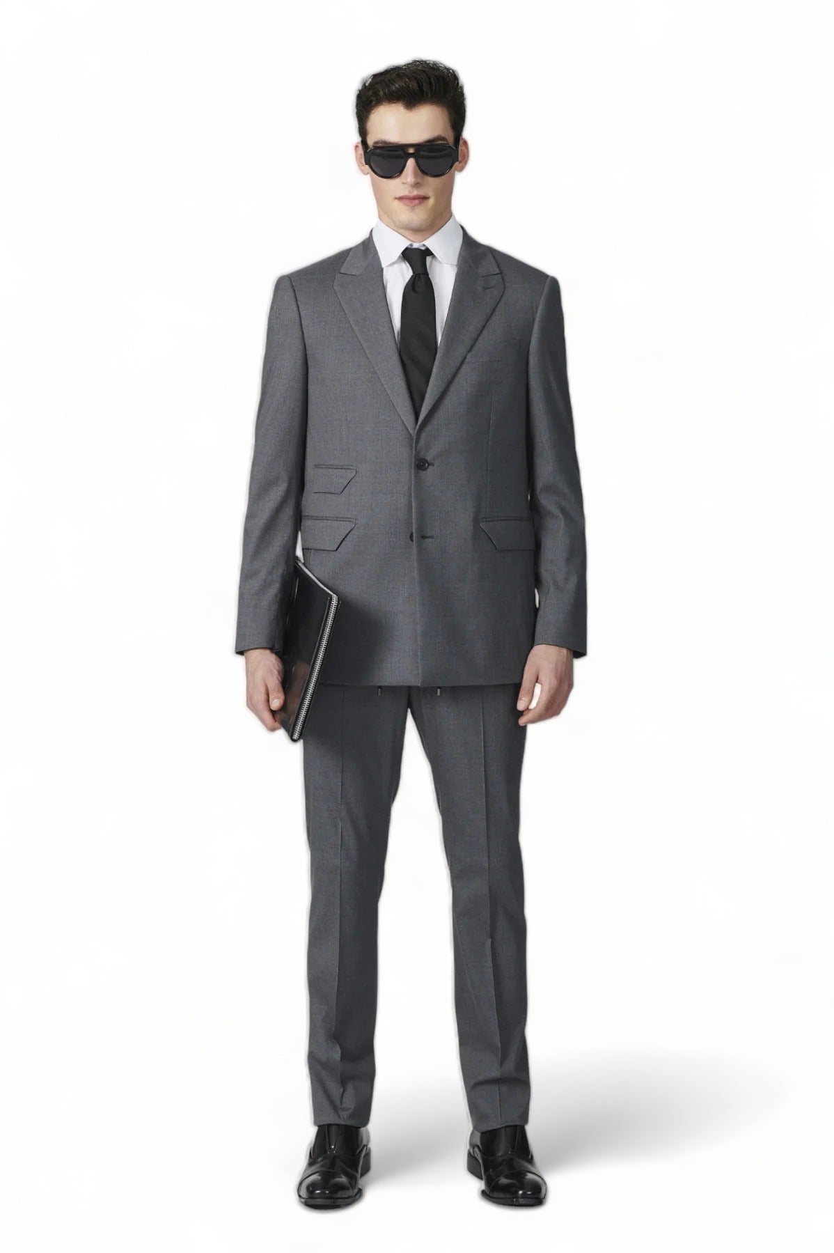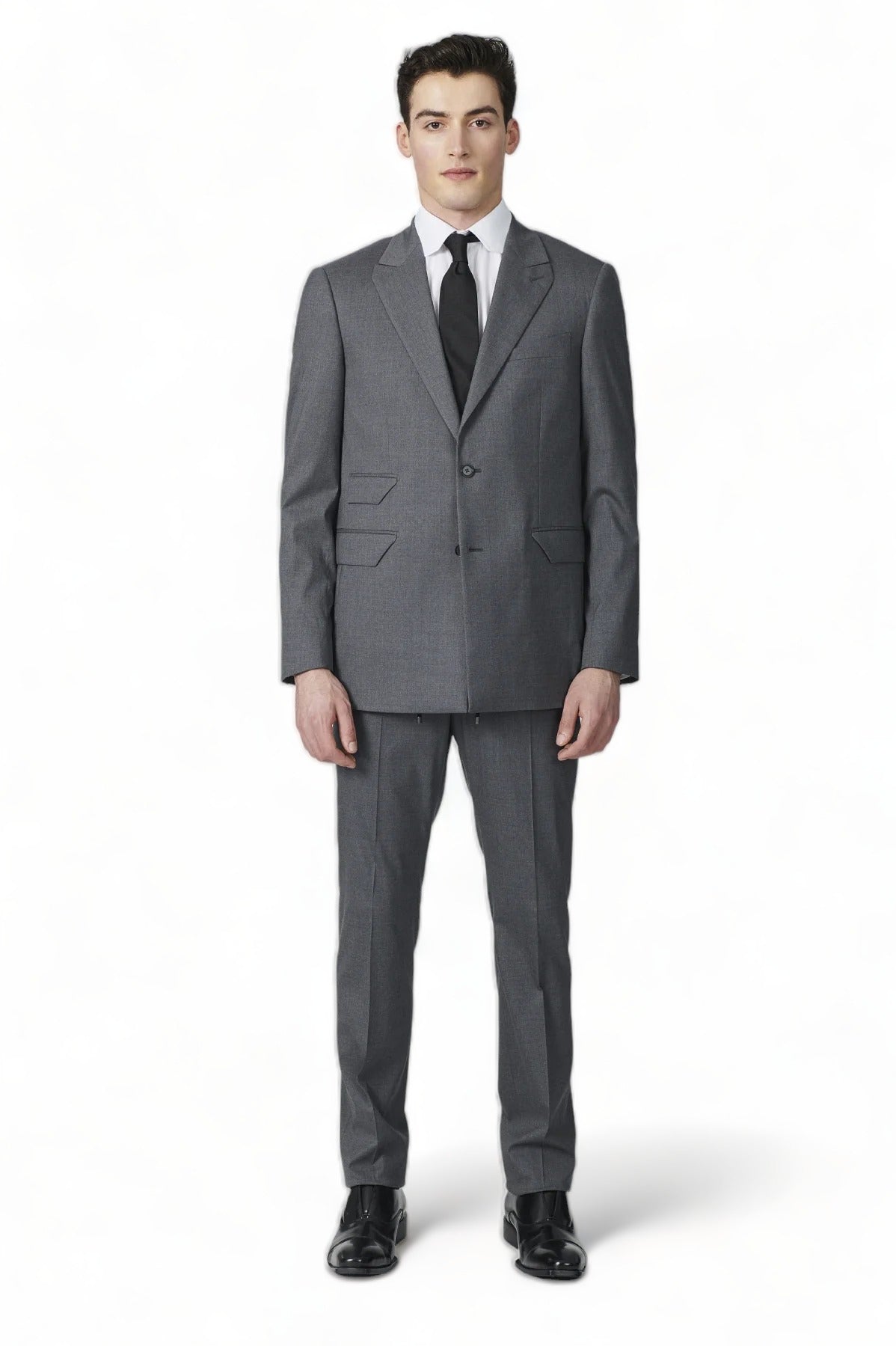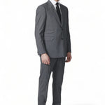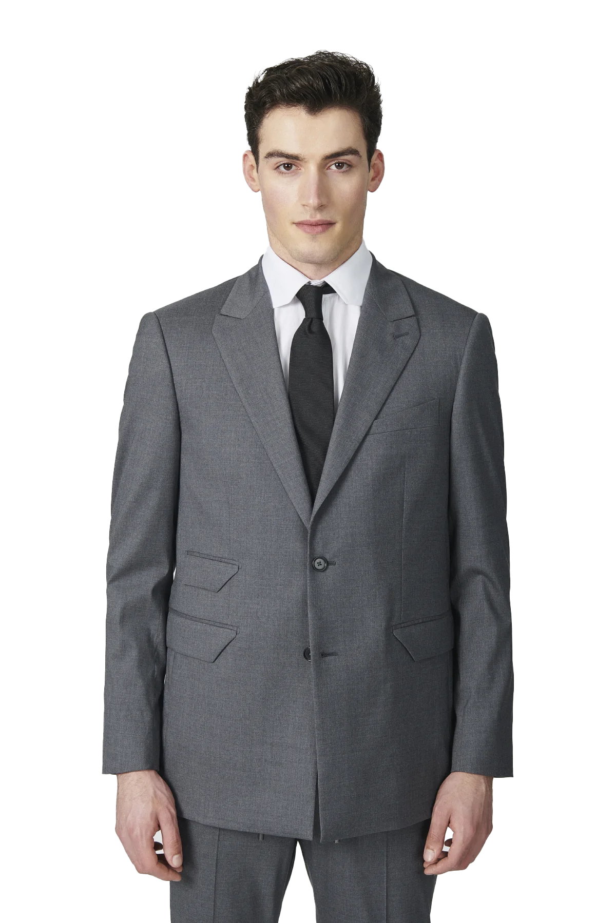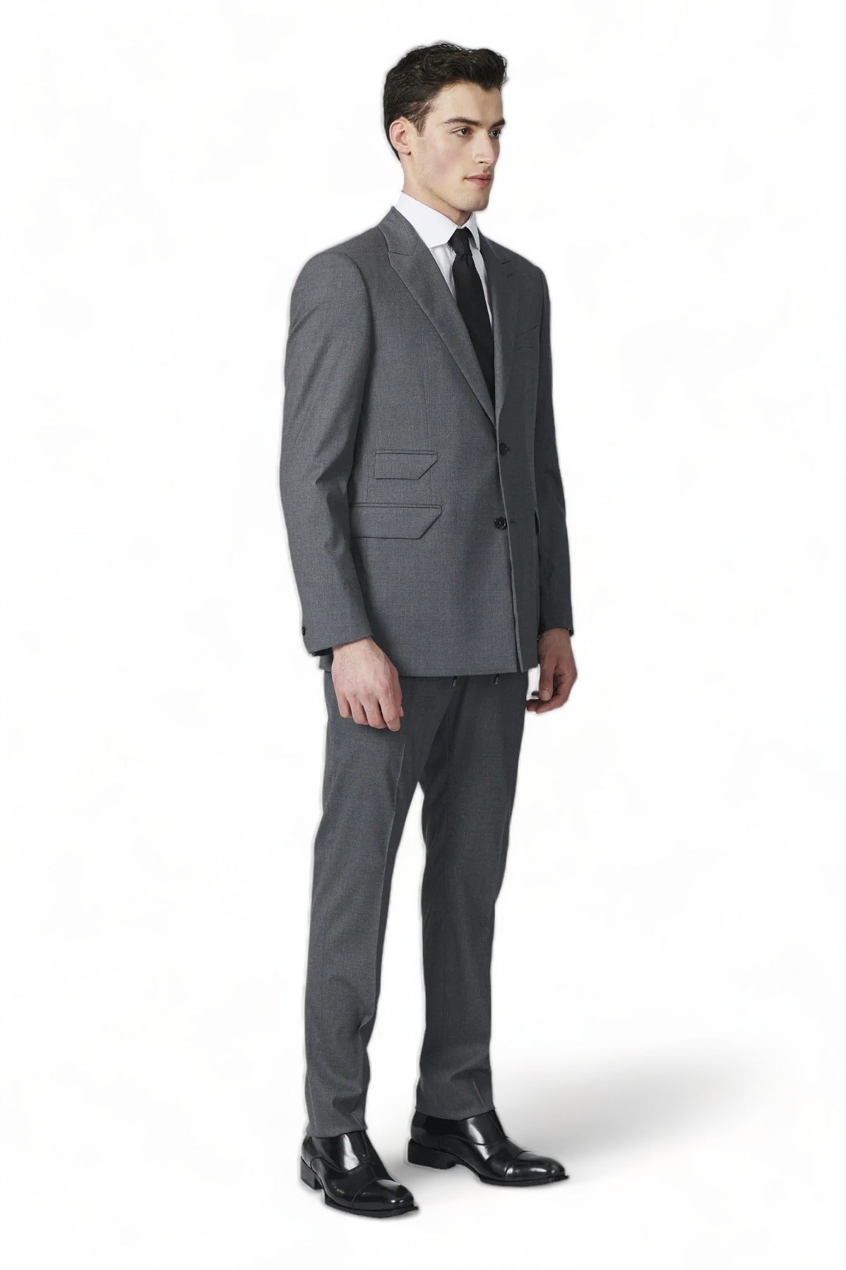 Crafted in Portugal. This grey half-canvas suit is constructed from a premium Loro Piana fabric of wool and silk blend.