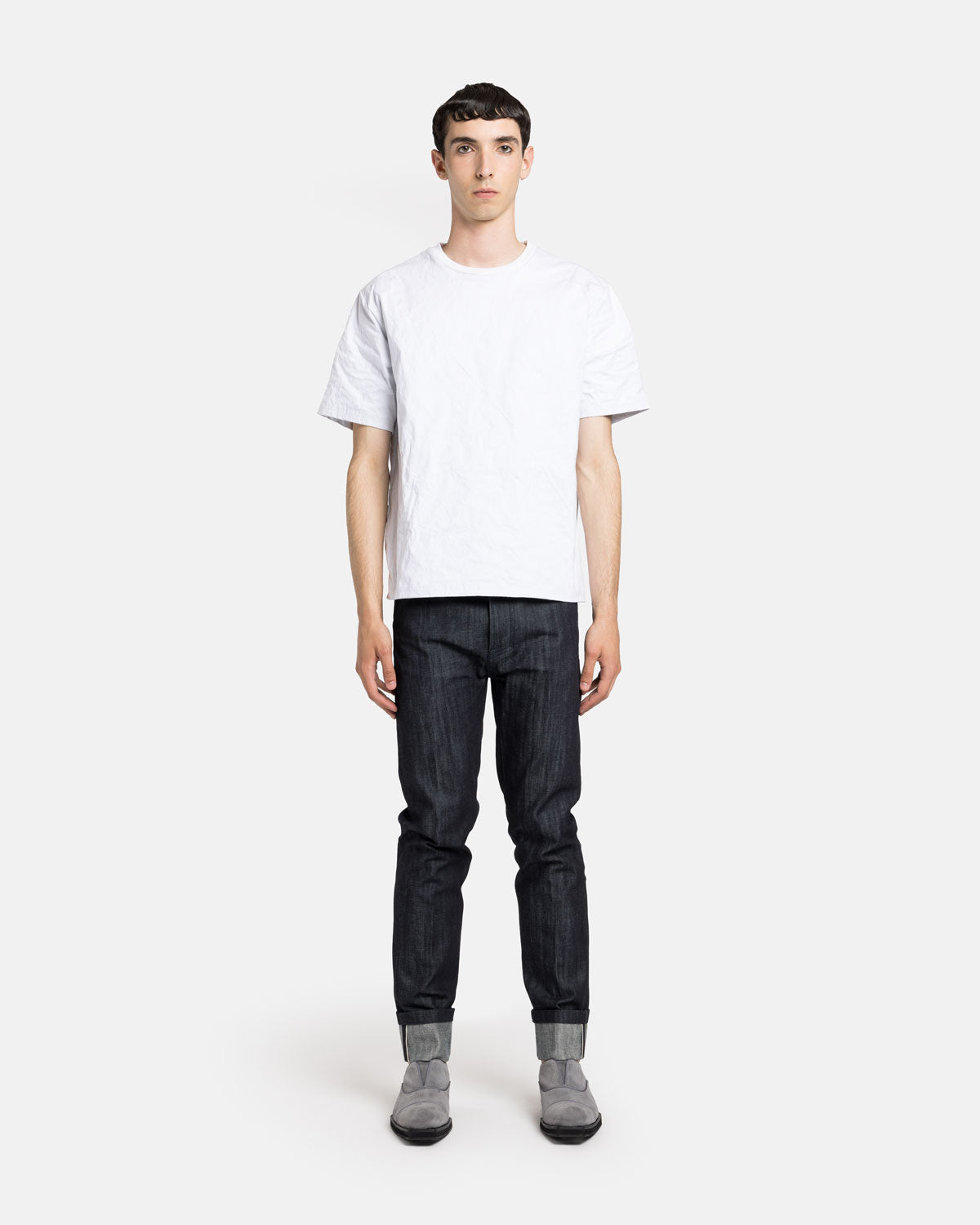 Instead of creating a worn and washed look at a laundry facility, the raw denim will get there over time, reflecting how you wear and care for them. It’s a long-term commitment, a longer-lasting, and more personal garment. As the jeans are worn, they will crease and mold to fit the body, getting softer and more comfortable with time, fading at points of strain, and wear and tear according to your lifestyle.