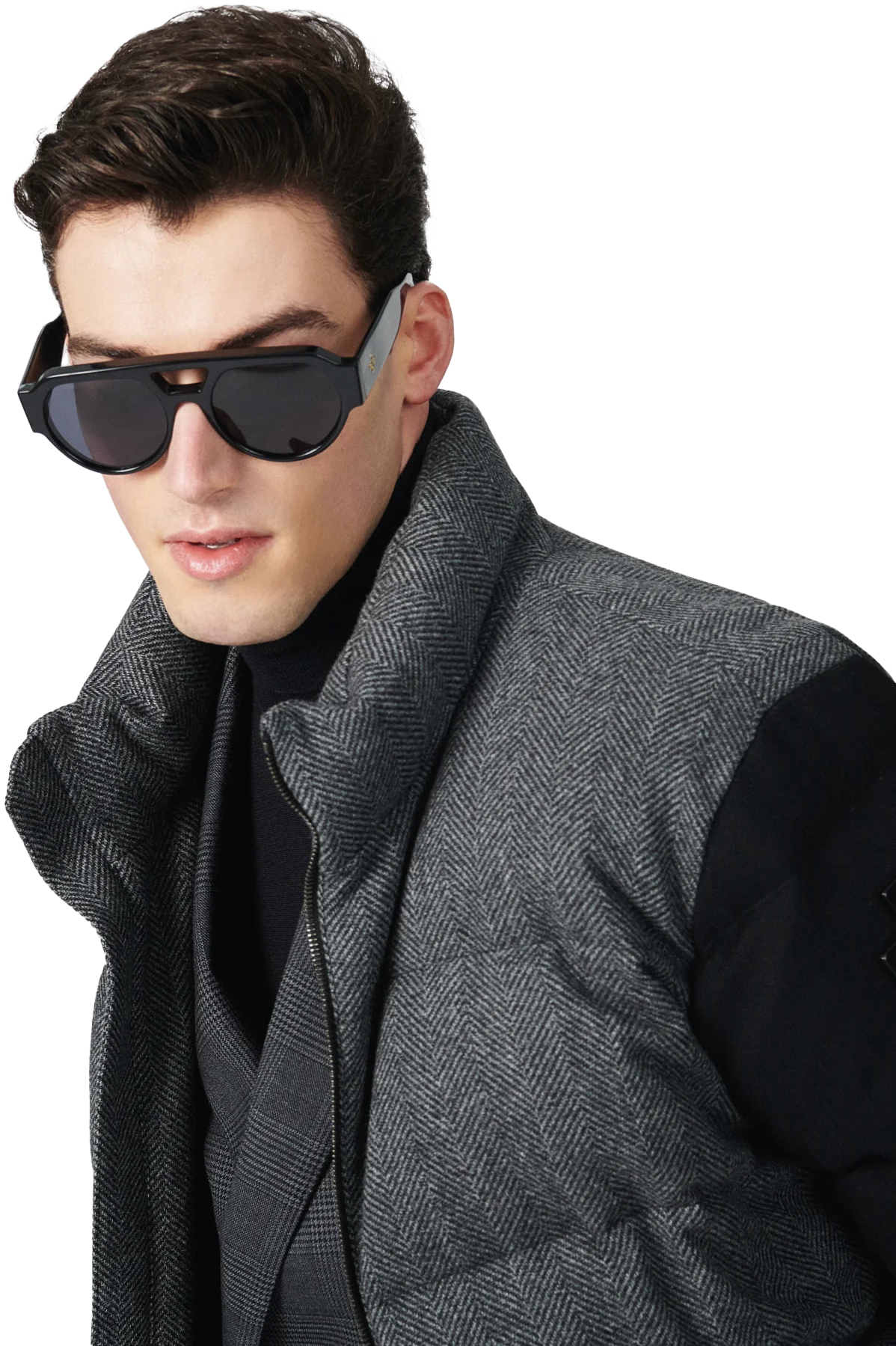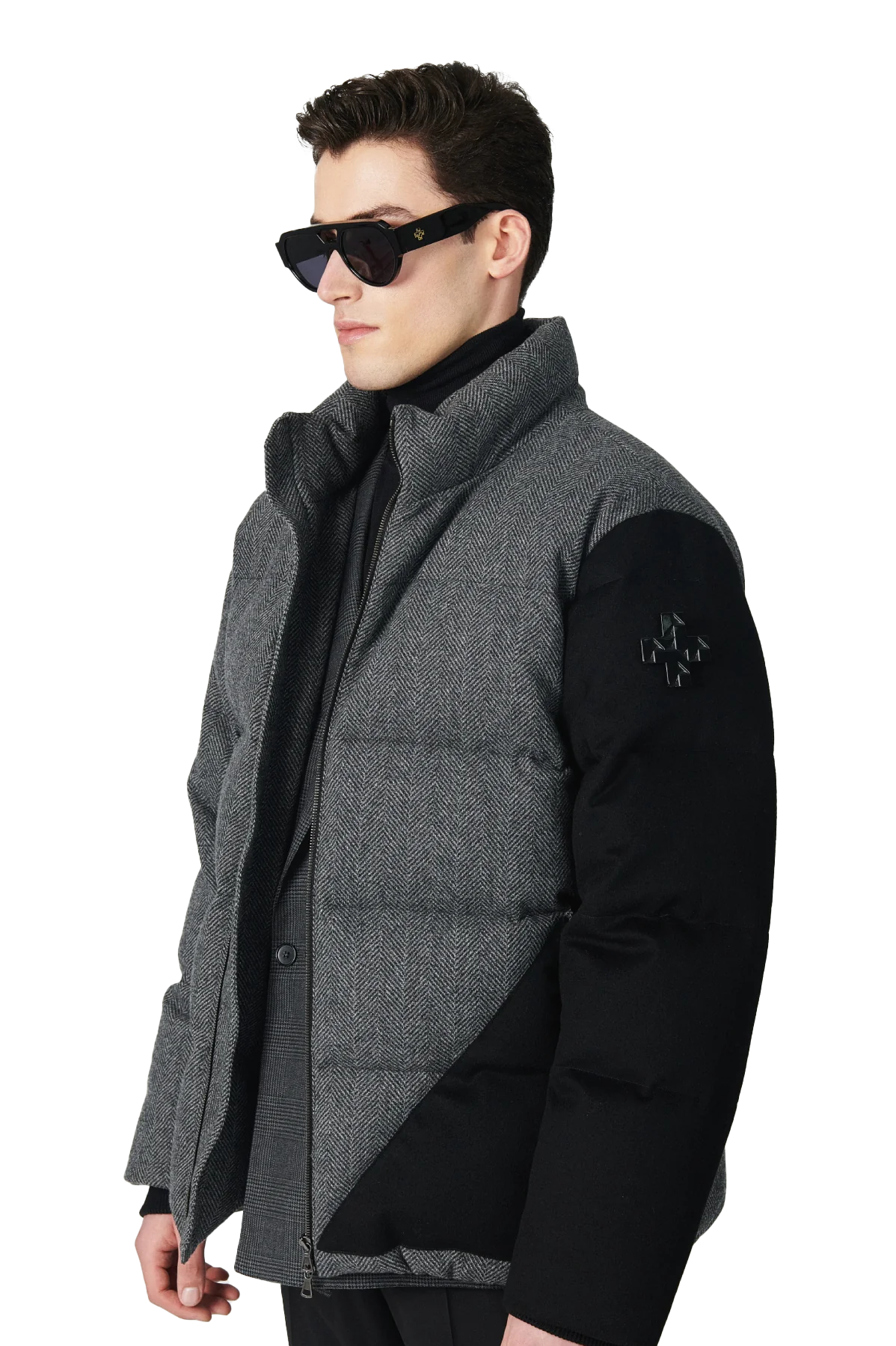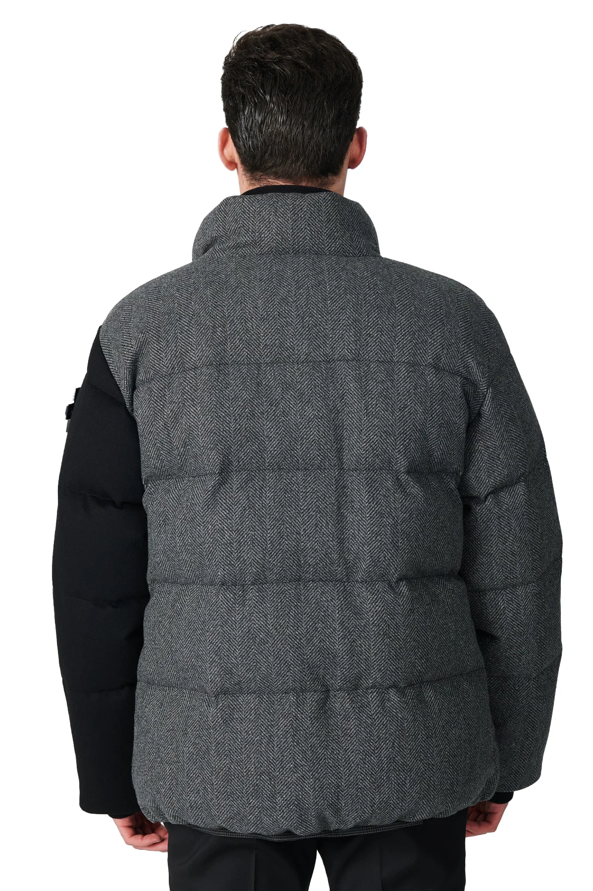 Made with a lightweight and warm Loropina herringbone wool fabric, this sophisticated puffer can be perfectly combined with tailoring or also, a casual style.