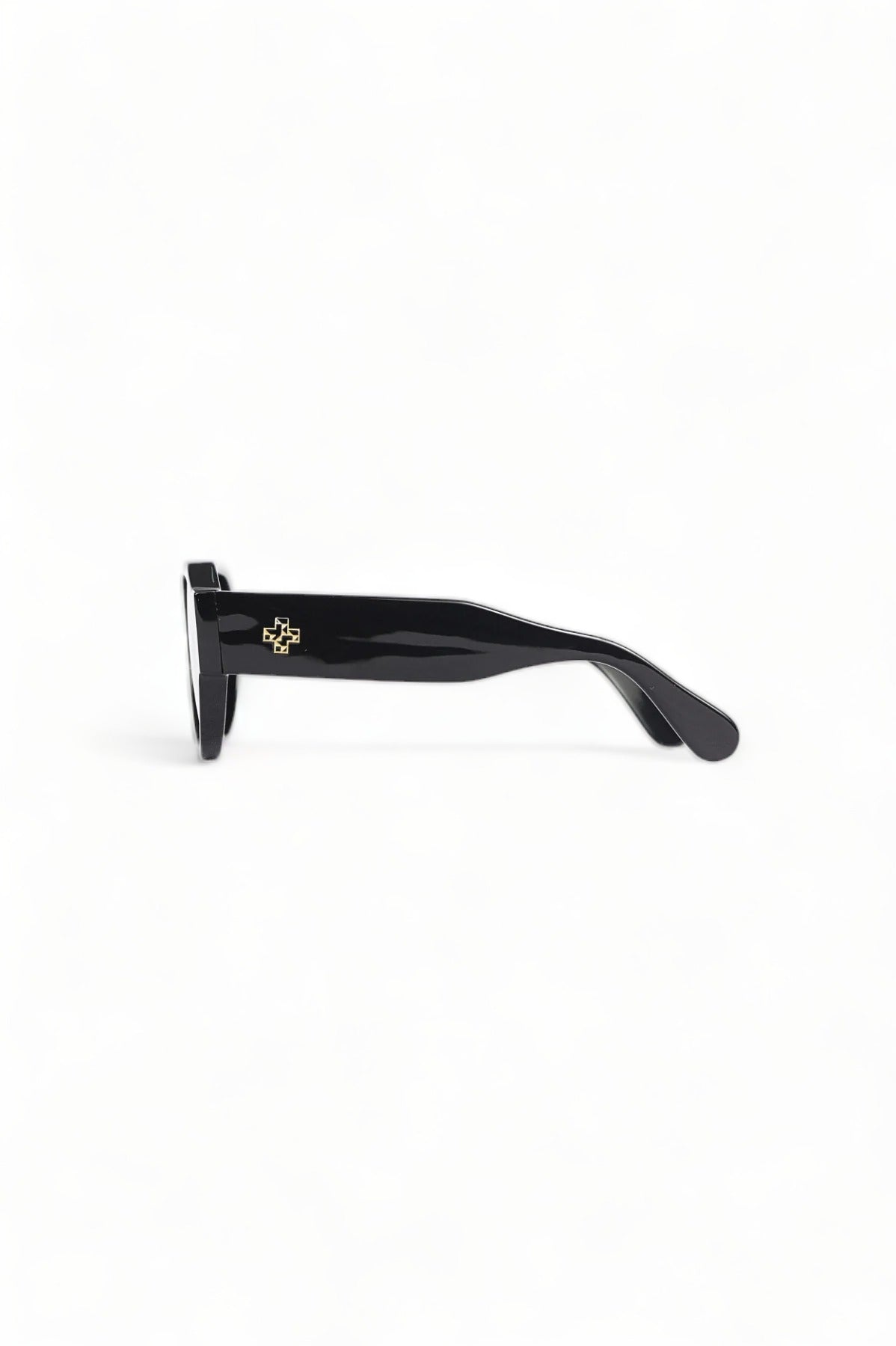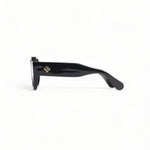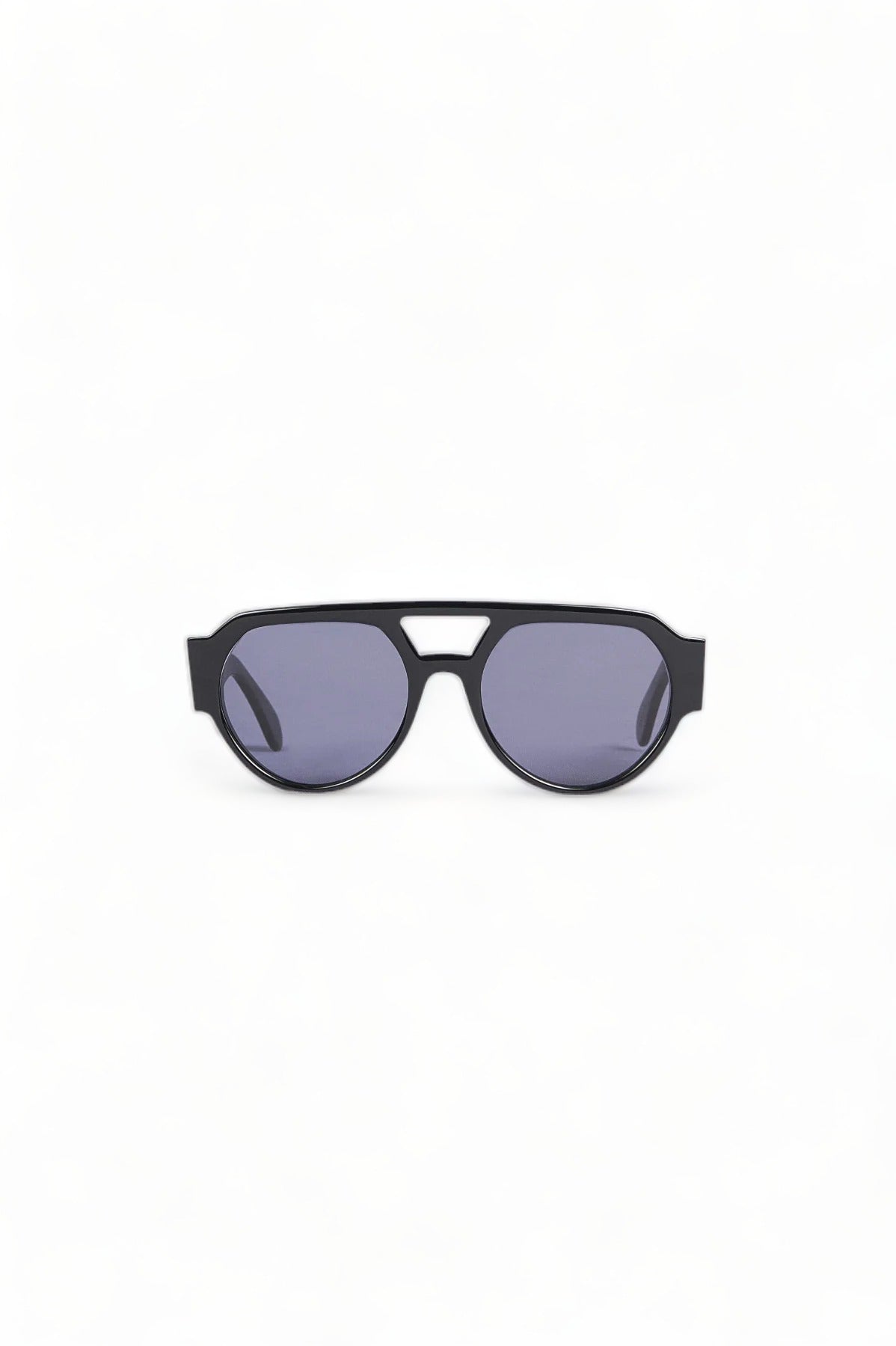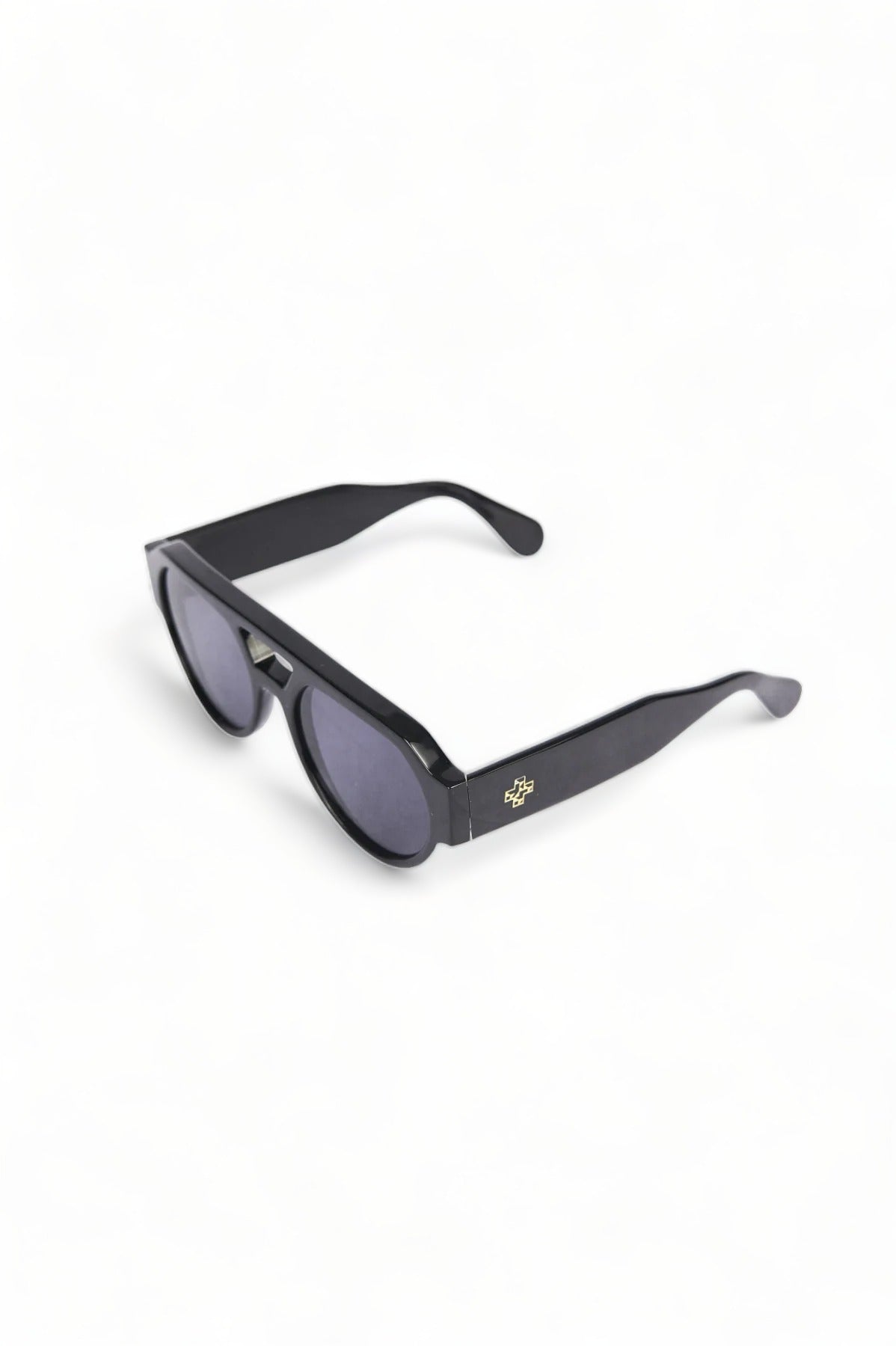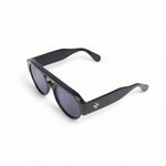 This aviator-frame style features a black frame with black tinted lenses, which provides a bright touch and modern design. They're finished with a gold-tone logo on the side.