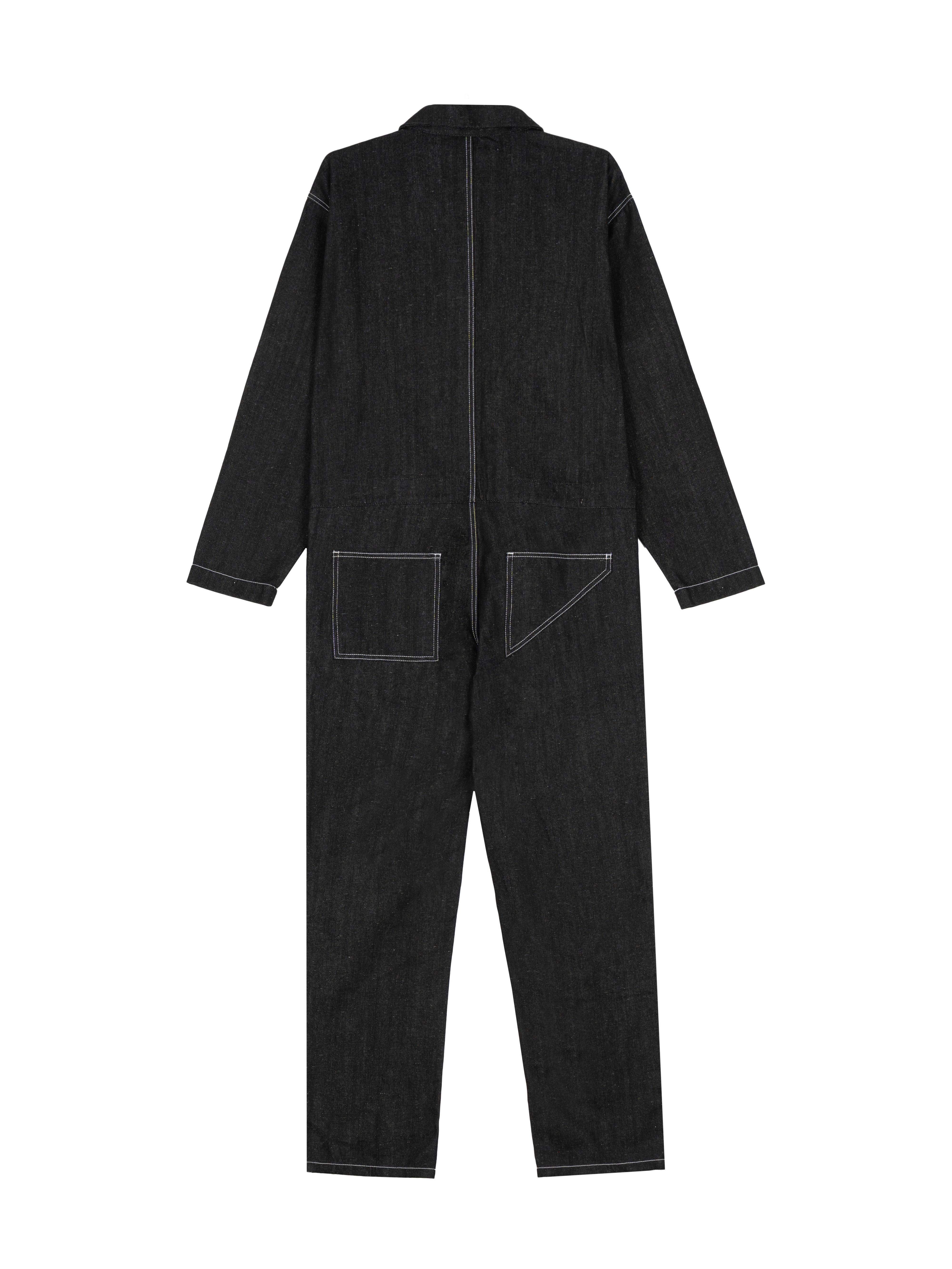 A reinterpretation of the classic workwear jumpsuit, featuring geometric details iconic to the brand. Crafted from premium denim and made to the highest quality standards.
