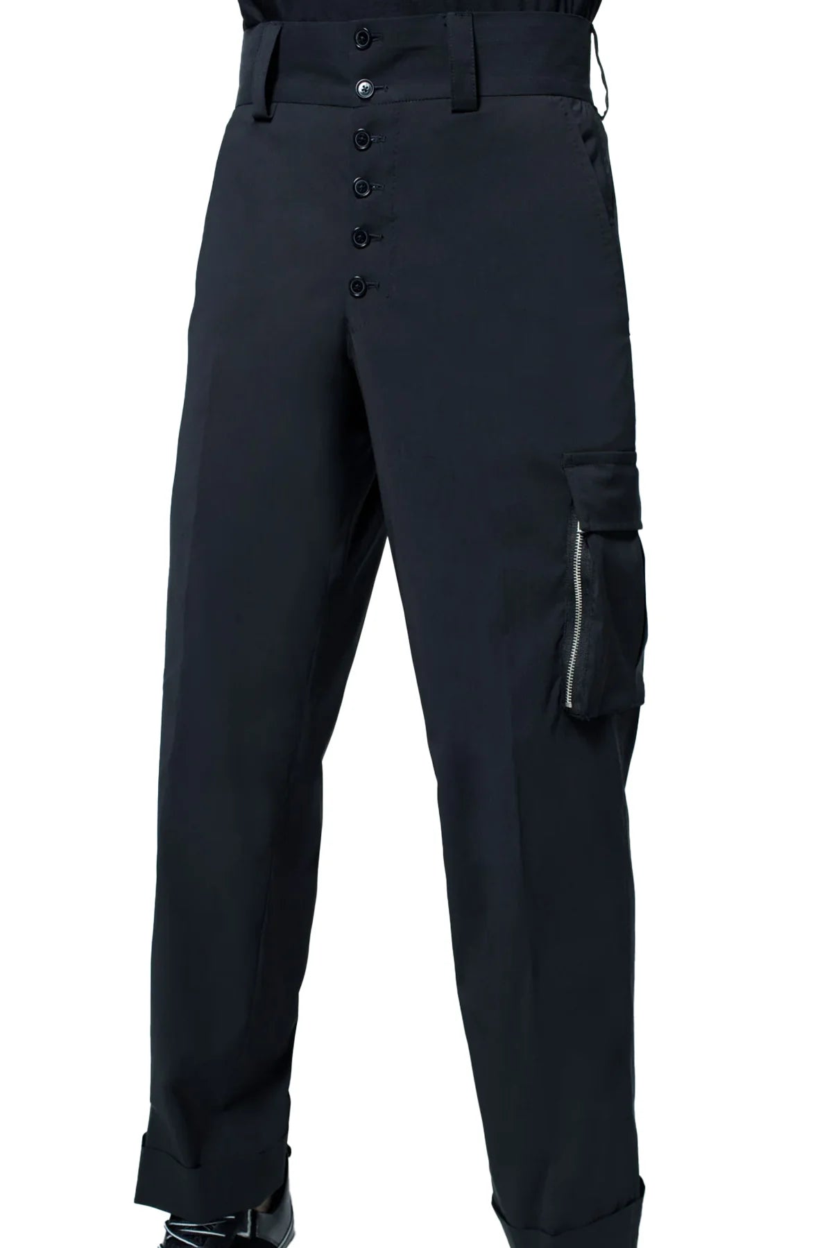 Introducing our latest creation: trousers crafted with exquisite Loro Piana fabric. These trousers not only boast the luxurious quality of Loro Piana but also feature a unique cargo pocket with a flap and zip for added utility, allowing you to carry your essentials in style. The 6cm wide waist with visible buttons adds a touch of sophistication, making these trousers suitable for any occasion. Elevate your wardrobe with this perfect blend of style and function, made with Loro Piana fabric